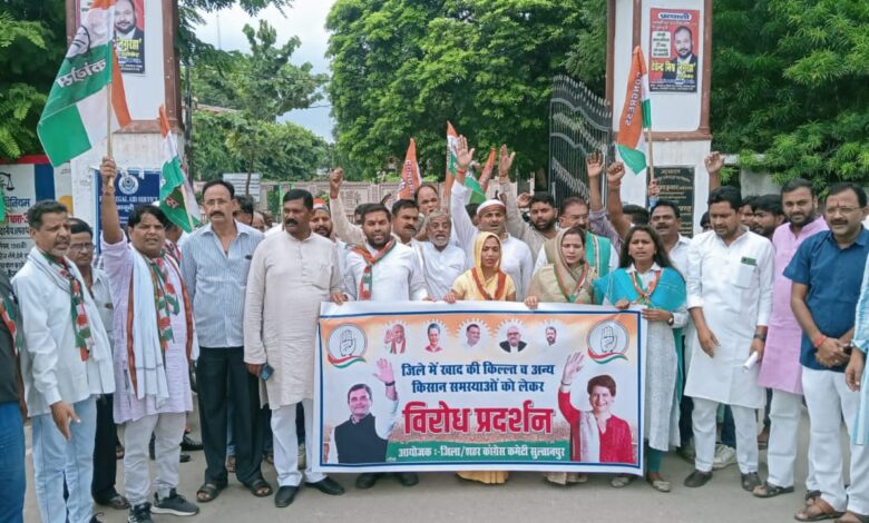 खाद संकट को लेकर कांग्रेस का जोरदार प्रदर्शन,सौंपा ज्ञापन