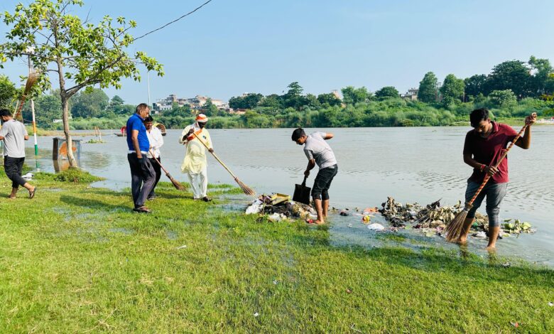 लगातार दो दिन की व्यस्तता एवं थकान के बावजूद गोमती मित्रों ने रविवार को होने वाले साप्ताहिक स्वच्छता श्रमदान को न केवल जारी रखा बल्कि नदी के घटते-बढ़ते जल स्तर की वजह से श्रद्धालुओं के लिए उत्पन्न हुई समस्याओं के समाधान का भी पूरा प्रयास किया,तट पर जमा मिट्टी से फिसलने का डर व बड़े हुए जल स्तर की वजह से उत्पन्न हो सकते खतरे के कारण लगातार श्रद्धालुओं को सचेत भी करना पड़ रहा है जिसके लिए इस वक्त प्रदेश अध्यक्ष मदन सिंह के निर्देश पर दो-चार गोमती मित्र हमेशा तट पर मौजूद रहते हैं,श्रमदान प्रातः 6:00 बजे से शुरू होकर 9:00 बजे तक साफ सफाई व सायंकालीन आरती की तैयारी पूरी करने के बाद समाप्त किया गया,आरती संयोजक व सहसंयोजक क्रमशः डॉक्टर कुंवर दिनकर प्रताप सिंह व राकेश सिंह दद्दू ने नगर वासियों को सूचित करते हुए कहा की आरती अपने नियत समय पर ही संपन्न होगी, श्रमदान में प्रदेश अध्यक्ष रुद्र प्रताप सिंह मदन,मीडिया प्रभारी रमेश महेश्वरी राकेश सिंह दद्दू,दिनकर सिंह,संत कुमार प्रधान,मुन्ना सोनी,अलोक तिवारी,महेश प्रताप,अजय प्रताप सिँह,श्याम मौर्या, प्रांजल,राज मिश्रा,अभय मिश्रा आदि उपस्थित रहे।